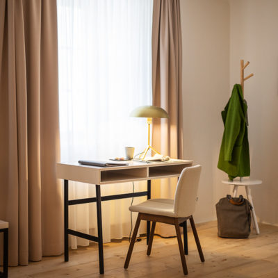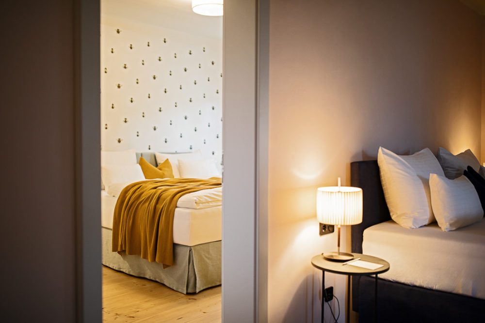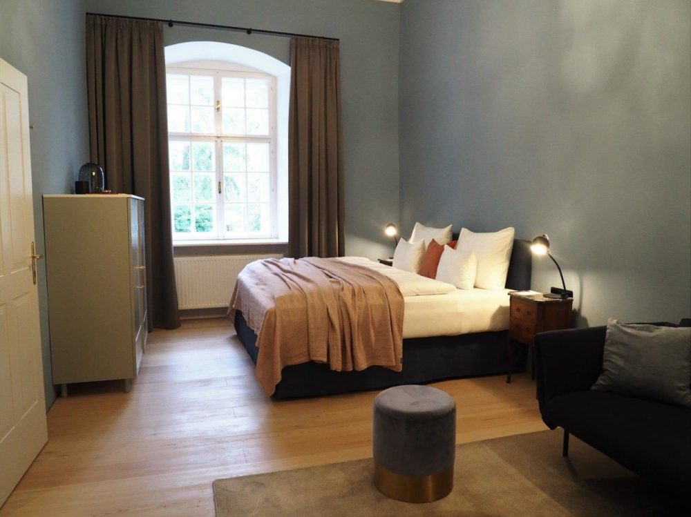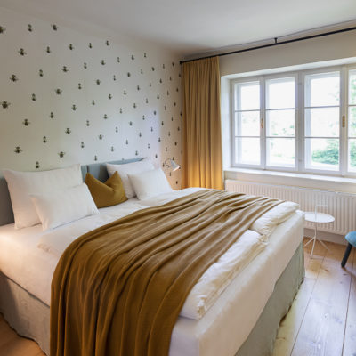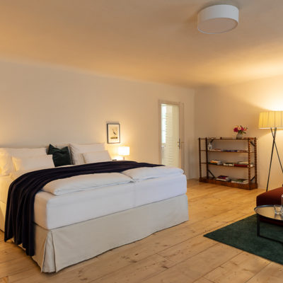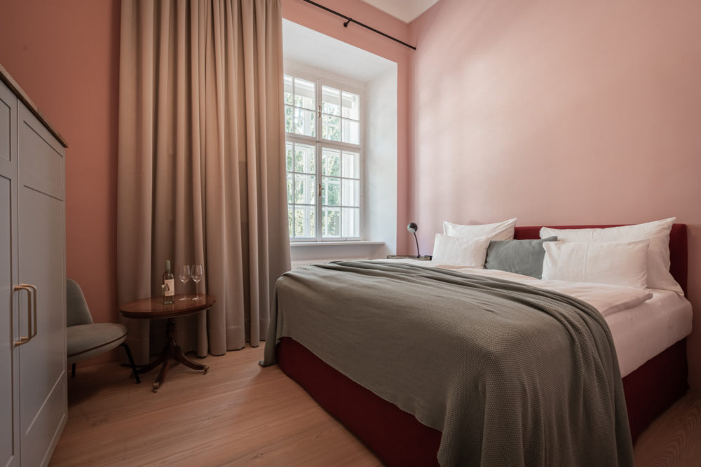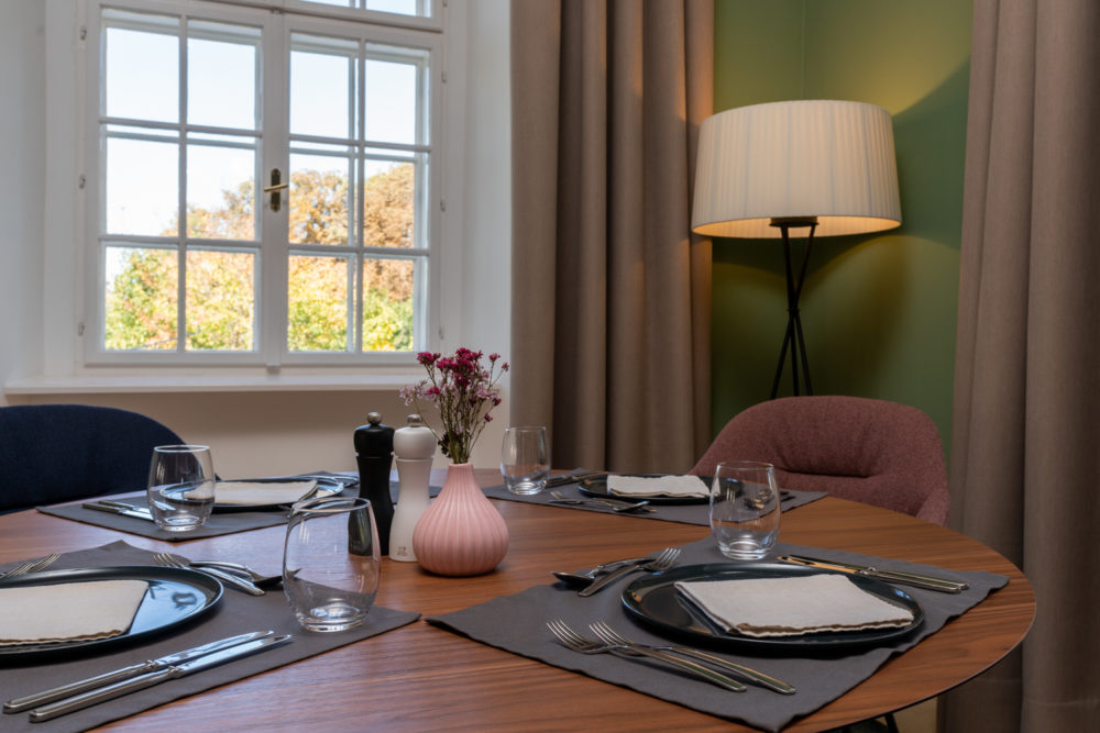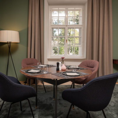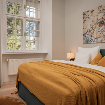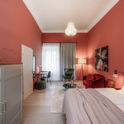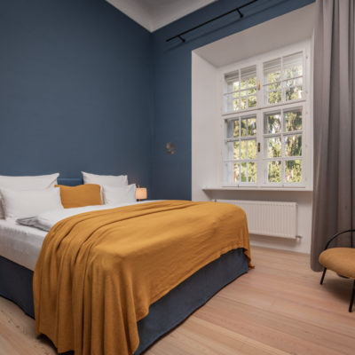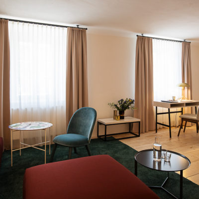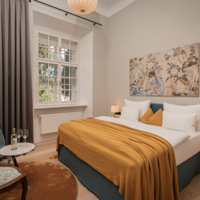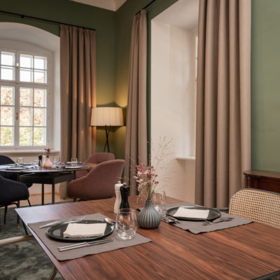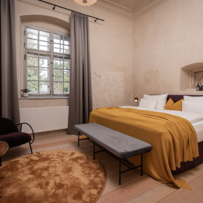 Distributed in various areas of the castle grounds, be that the beautifully renovated residence of the former head gamekeeper of the Esterhazy domain or in the west wing of the castle itself, the suites of Hotel Zum Oberjäger are certain to impress. Space in abundance. For yourself, friends, or family. Each suite has been thoughtfully restored and renovated, preserving the building's rich history while bringing it confidently into the present day through the artistic vision of POLKA. With each space being unique, the suites are thoughtfully categorized for your convenience. We invite you to explore the distinctive features of our suites, available in M (Medium), L (Large), and XL (Extra Large) sizes.