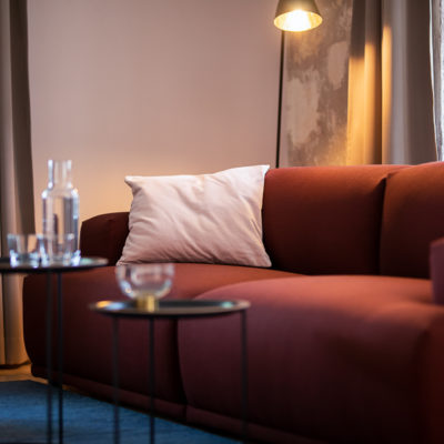 Approximately 49m² suite. Nestled between the Arboretum and arcaded walkway of the castle. Green birds frolic on the colorful cushions and pictures in the suite, which is aptly named the “Bird Room”. The underlying motif is provided by Josef Frank’s “Gröna Fåglar” – green birds, depicted on cushions found in various places. The feathered residents of the park seemingly lend them a voice, generating a harmony between indoors and out. And as you recline amid the comfortable sofa ensemble, your eyes are inevitably drawn to the birds flittering about effortlessly in the park outside. Radiant in front of the suite, colorful flower beds swathed in the magnificent seasonal tones of nature.
